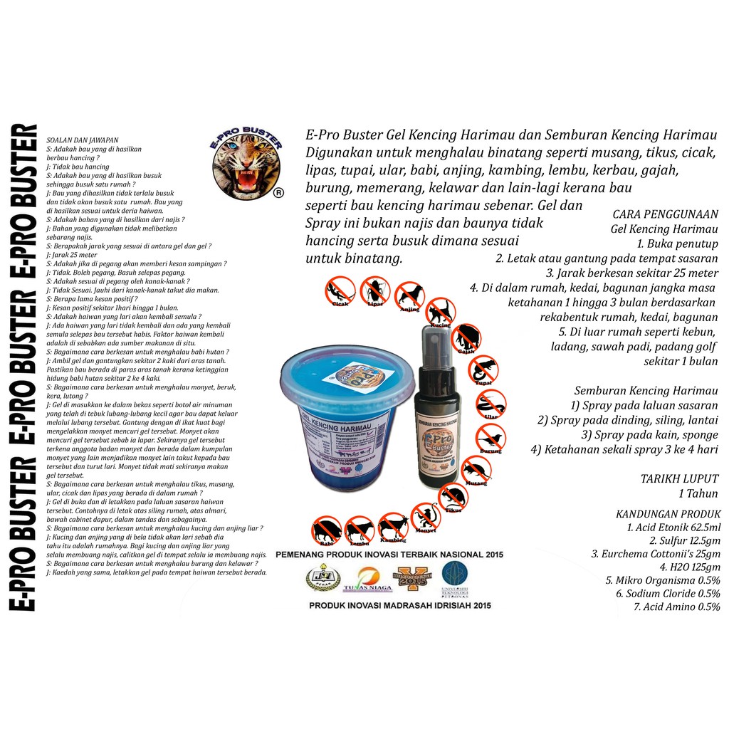 Nw2y Readystock E Pro Buster Spray Kencing Harimau 60ml X 1pc Halau Babi Hutan Monyet Lembu Kerbau Burung Kelawar Mem Shopee Malaysia